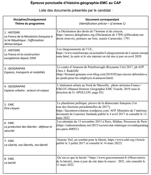 - Lors de l’examen, vous tirerez au sort un document parmi ceux que vous aurez préparé.