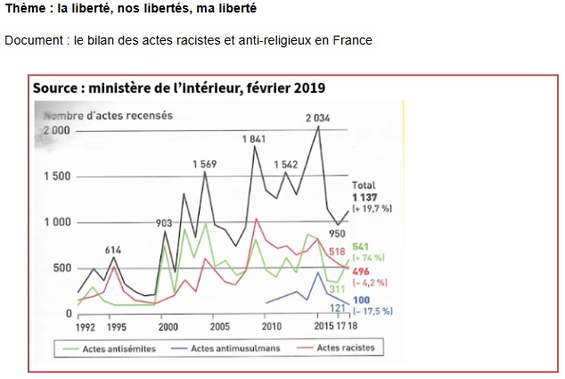 C’est un document de 2019 qui présente les chiffres officiels du ministère de l’Intérieur sur le nombre d’actes racistes recensés de 1992 à 2018. C’est un document statistique. - Problématique